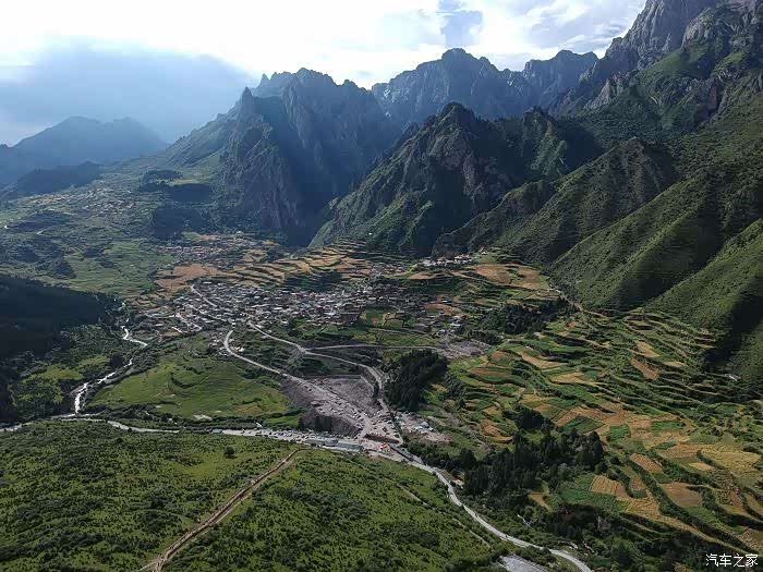 郎木寺之夜流落街头,睡得还成吧,晚上不热。早上起来就是没地儿上厕所,我怀疑那地方压根就没有公厕,心情大坏,开着车先离开镇子再说,一路也找不到适合方便的地方。直到走到S313和国道213交叉路口,发现一个挺大的地方——郎木寺游客中心,直接杀了过去,结果发现这个游客中心还没有投入使用,正好,在广场上驻车,解决了吃和撒两大问题,继续国道213往红星镇方向前进,昨晚堵在这里的大卡车们一点也没移动,好像是修路不让通过。小车不影响,到了红星镇沿着省道313朝扎尕那前进,一路白龙江相伴,从红星镇开始就是修路,泥石流,单边通行等等,但路不算难走,这里属于若尔盖县,风景是高山峡谷,我还以为若尔盖只有草原呢,一路风景不错,大片的森林,湍急的白龙江,旁边还有一些村寨,村寨里长着古老的大树,恰逢青稞收获季节,我还过去看了一下,他们这里是集体劳动,许多许多人在一块地里收割青稞,然后用拖拉机运到高处的村庄里,在木头架子上晾晒,边劳动还边唱着歌,可惜白龙江流水声和拖拉机的机器声太大,听不清唱的是什么,我感觉这画面很美,拍了几张继续前进。
