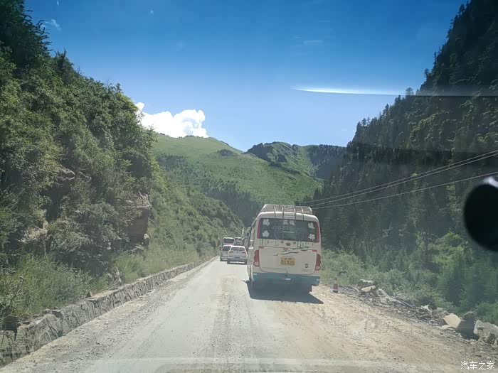 大约快11点时到达去往扎尕那的路口(注意这里有个加油站厕所干净,还可以接自来水),要等到12点才放行,没关系,咱先吃饭,往迭部县城方向走了几分钟,找一片树林开饭,饭是路上煮的米饭,煎了鸡蛋和火腿肠,又做了一个西红柿汤。吃完又返回扎尕那路口,感觉有点拉肚子,又返回迭部县城,买了两板氟哌酸2块钱,吃了立马见效。扎尕那路口离县城很近的。然后就开始刺激的驾驶路段了,扎尕那路口到景区的20公里正在修路,那叫一个尘土飞扬啊,白天开车要开双闪,路面坑坑洼洼,但也不是很难走,没有太大的坑,这些情况我来之前都是掌握的了,所以也没有什么抱怨,扎尕那来之前我都认为是此行最壮观的一个景点,付出一些代价都是值得的。