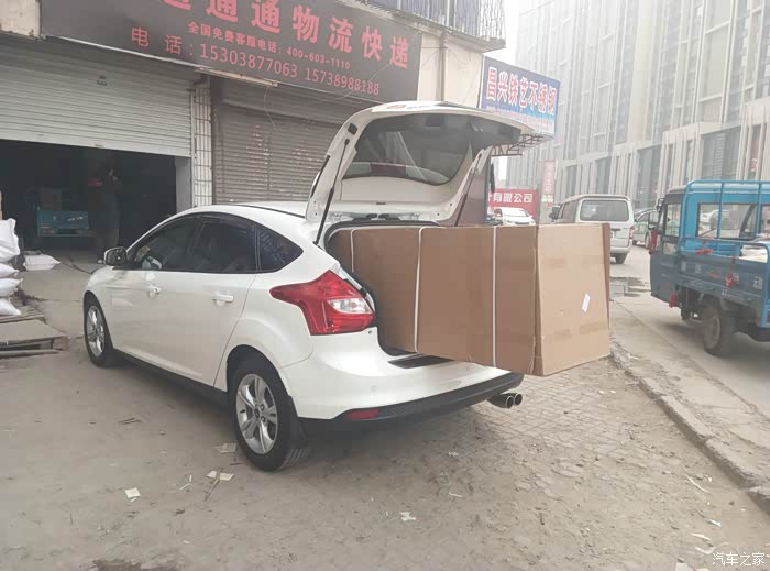 《蜕变》从下单到提货速度很快,大约3-4天,那天正在洗车,物流告知我去提货,激动的洗了还没擦干车身就从洗车店直奔物流提货,到了之后,好大一个箱子,外加一根打了木架的ST排气尾段。到付170块,把后排翻下去,小福立马变身小货车,妥妥的连同排气一同塞进了尾箱,只是后备箱不能关上了,还好改装店离物流很近,一路上小心翼翼的开了过去,这一路上还是很吸引路人眼球的