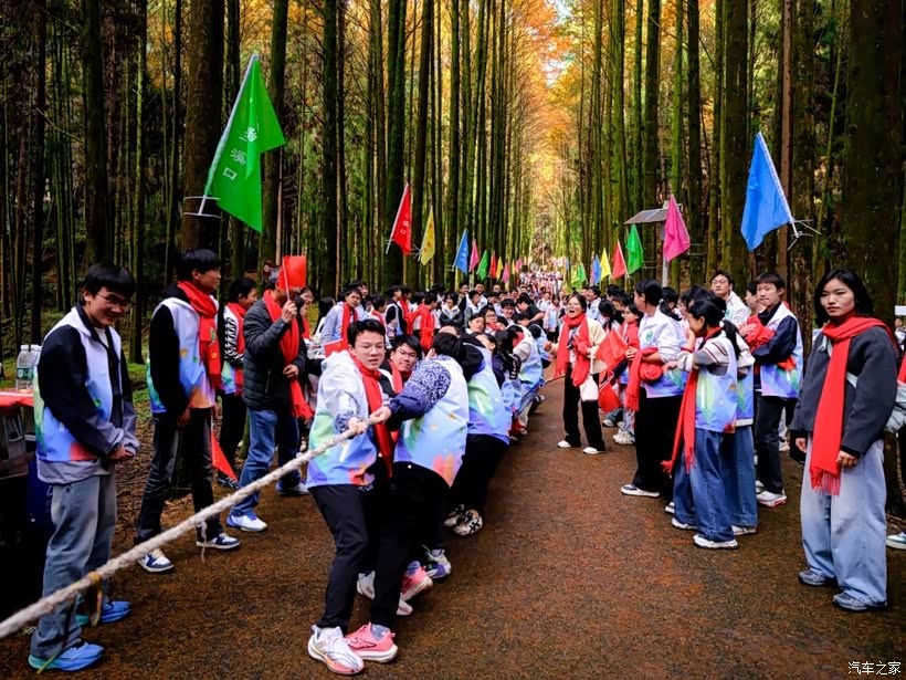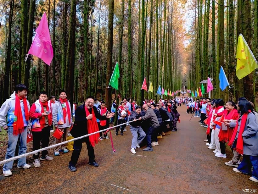 歌声落下,拔河比赛紧接着拉开帷幕。同学们分成两队,攥紧绳子,身体后倾,使出浑身力气拉扯,老师们也忍不住加入其中,加油声、呐喊声此起彼伏,震得枝头的黄叶簌簌飘落。