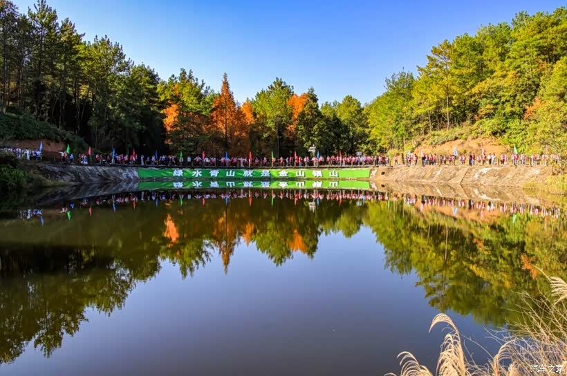 沿着林道继续前行,便来到了樱花湖畔。樱花湖碧波如镜,湖面上倒映着岸边的彩林和蓝天。同学们在湖堤道路上表演韵律操,整齐的动作、灿烂的笑容,与湖堤“绿水青山就是金山银山”的标语相映成趣,构成了一幅和谐的生态画卷。