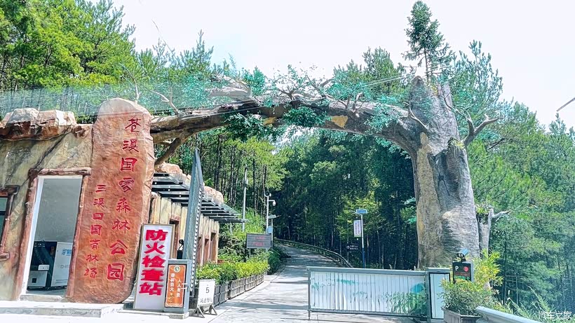 行至“黄猫垭·三溪口红色文化主题旅游区”的石牌坊,这便意味着,距离高坡场镇不远了。再往前行驶8公里,就到了三溪口防火检查站,这是进入林区的必经之地。每一辆车都要严格登记,工作人员还会耐心讲解森林防火的注意事项,让人感受到林区管理的严谨。检查站的大门设计得格外别致,一棵弯折的“大树”相左延伸,天然形成一道拱门,仿佛在欢迎远道而来的客人。
