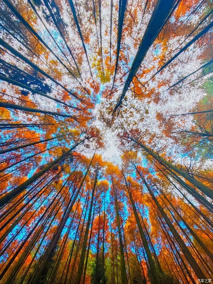 漫步在林道中,才真正体会到什么叫“人在画中游”。仰头望去,水杉的枝叶交错纵横,形成一幅天然的穹顶,随手一拍,便是“万箭穿心”的震撼构图。