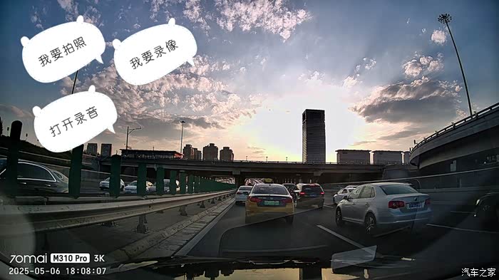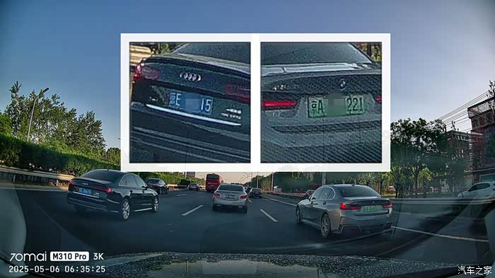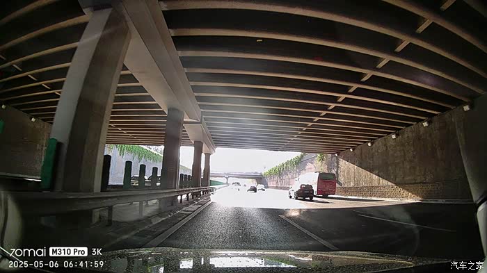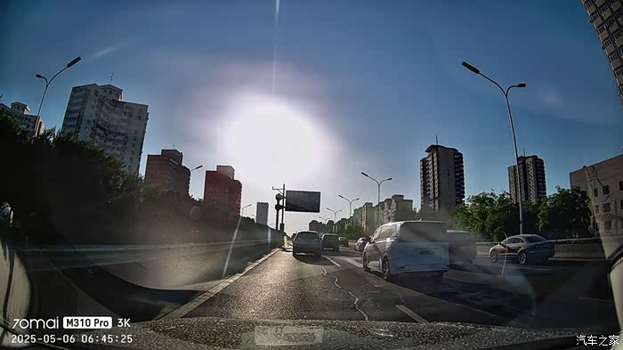 上图是北京早晨6点多的北四环西向东方向,太阳刚刚升起,接近于直射的角度让画质和细节有所下降;我特意在通过桥区时抓拍了几张照片,这种突然由暗到亮或者由亮到暗的极端光照环境非常考验记录仪的感光控制,M310 Pro3K能很快适应光线的极速变化并及时调整画面,没有出现那种瞬间黑屏或者大白屏的情况,这点我非常满意。