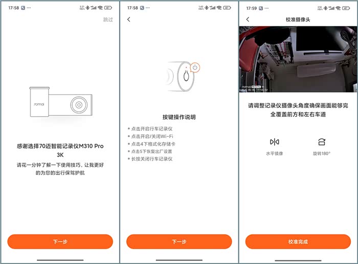 70迈M310 Pro3K的安装非常简单,将包装内的静电贴纸吸附在前风挡顶部,撕掉记录仪主体上的背胶进行粘贴,连接TypeC供电线,并用走线撬棒将供电线隐藏在顶棚边缘,打开手机“70mai”app按引导连接即可,从安装到使用都非常简便。