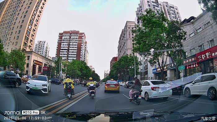 通过装车实测后发现,M310 Pro3K在夜晚低能见度的环境下拍摄能力提升明显,F1.55大光圈能捕获更多光亮,使得画面比肉眼所见还要清晰,高亮度的路灯也没有产生很多炫光,噪点控制也不错。
