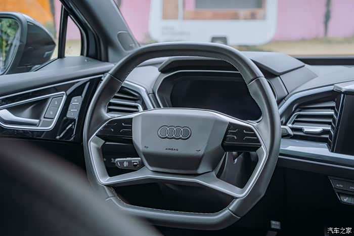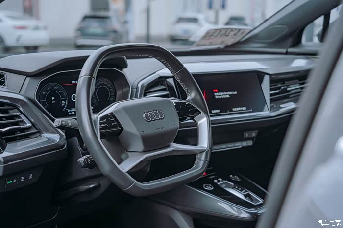 奥迪Q4 e-tron的中控布局大气且精致,兼具运动感和科技感,多功能方向盘为上下平底样式,四辐式的设计彰显豪华,用料和做工都是上乘水准。