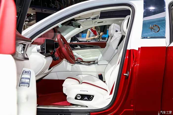 进入到车内,红旗H9+的用料要更加考究,大量皮质包裹以及实木饰板的运用更突出豪华氛围,四座布局让后排乘客空间格外宽敞,并且可通过屏幕独立控制空调、座椅位置等功能。