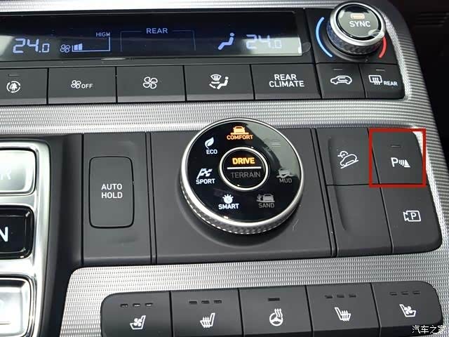 3、再次点击中控台下侧的P弧线三角图标按键,可以关闭驻车雷达。