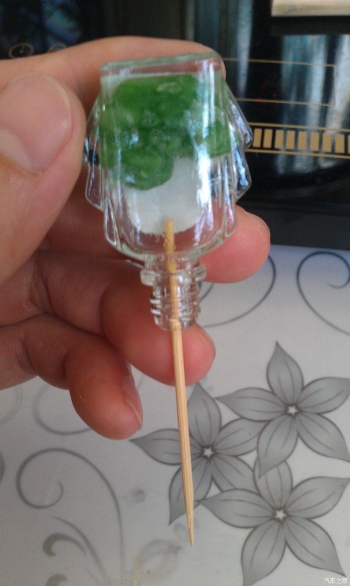 再用牙签往瓶子里塞棉花,塞到足够将里面的风油精全吸在棉花上,
