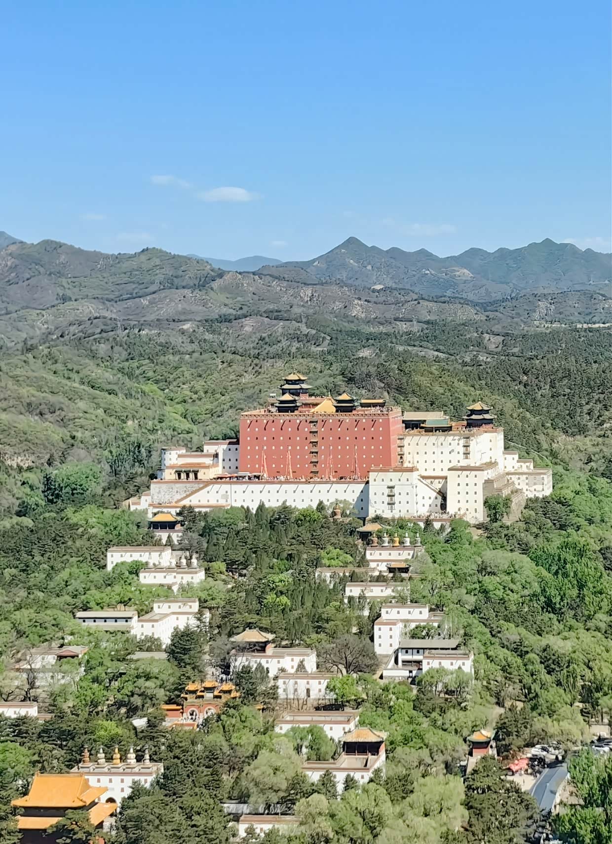 山区面积占避暑山庄的五分之四,峰峦叠嶂,沟壑纵横,绝对值得一游!环山车全程约1小时,中途停靠三站:四面云山亭、二马道、青枫绿屿。其中,二马道的风景最为迷人,可以俯瞰小布达拉宫和热河行宫,拍摄出的照片宛如大片!