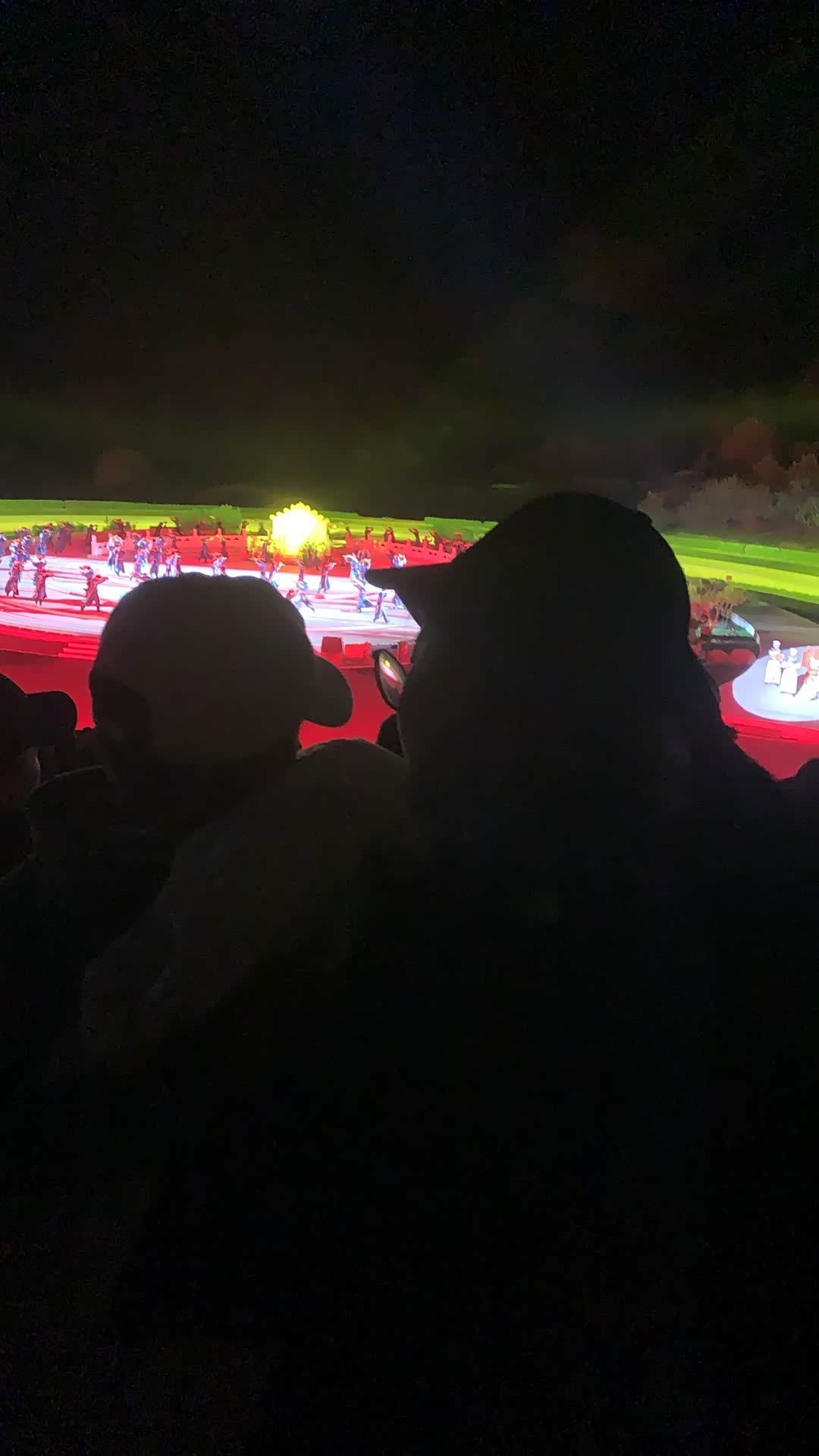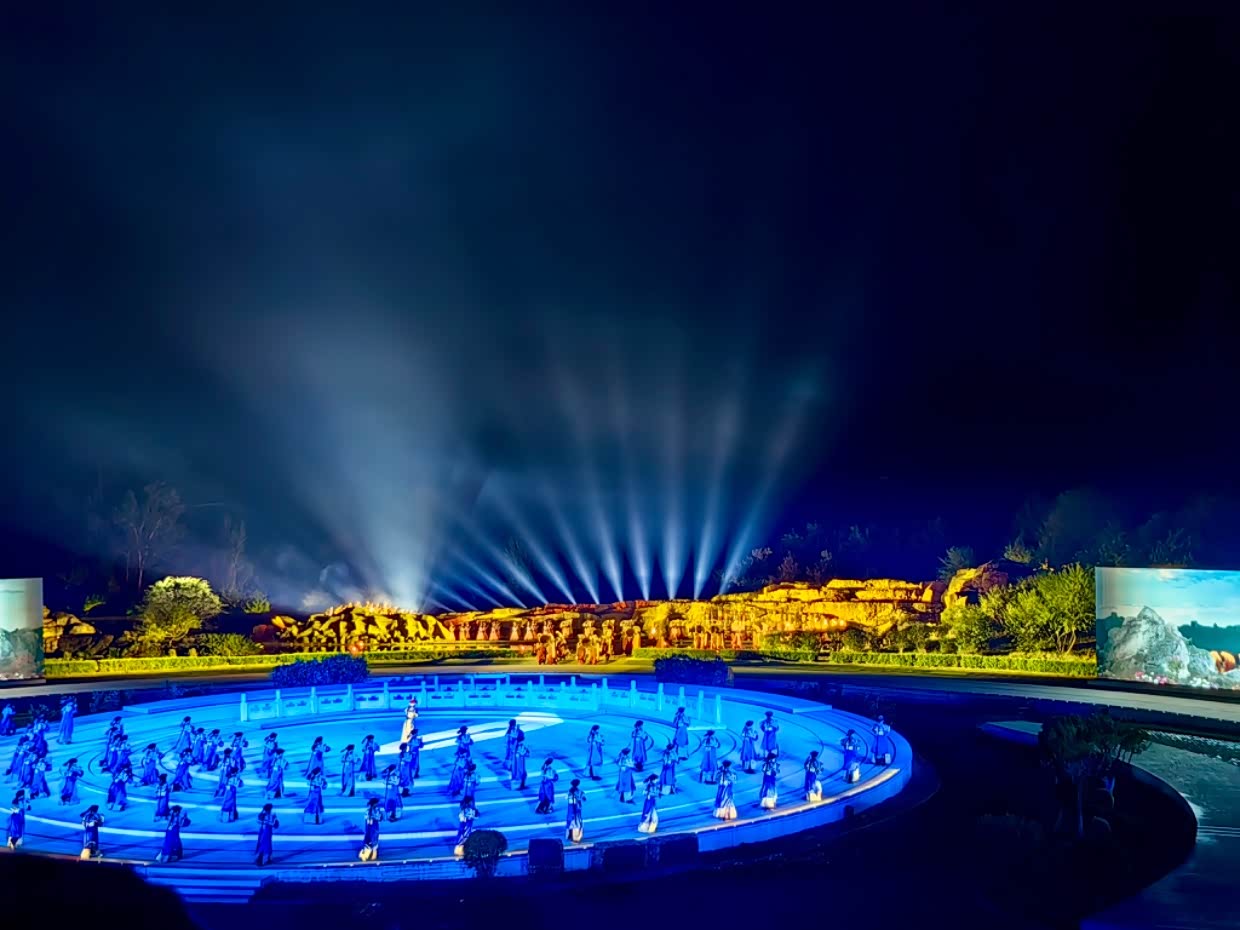 晚上,我们开车前往观看《鼎盛王朝康熙大典》实景演出,以皇家文化为主题,首次观赏,深感震撼。但由于孩子年幼,不敢在前排观看,我们便带他到最后一排站立观看,演出时长约一个半小时,座位位于中间靠前位置,票价为228元。此外,演出场地提供免费停车及充电桩,颇为便利。