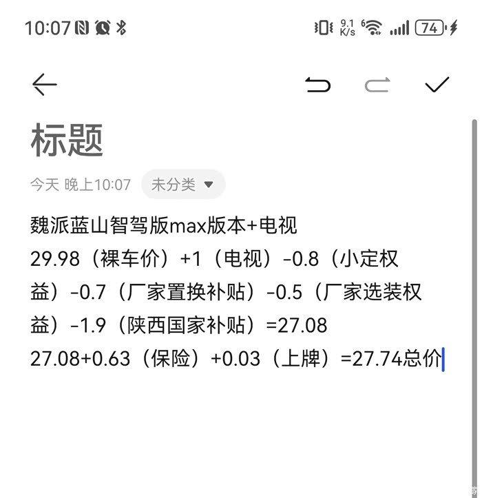 1.有了理想l8做对比,再加上之前的小A买的时候也23万了,所以一开始预算肯定在30万起步了。国产车新能源这两年相对比油车,同价位配置真的拉了好几个等级,再一个老丈人家离西安将近1000公里,太远了,每次回家都操心的不行,肯定是计划买电车了