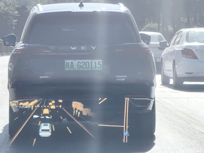 2.配置:最满意的地方就是蓝山的hud,尺寸巨大,并且清晰度也足够了,能够显示当前的车速,限速,环境信息,和导航,不要太方便