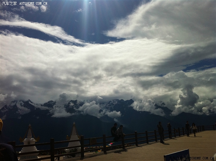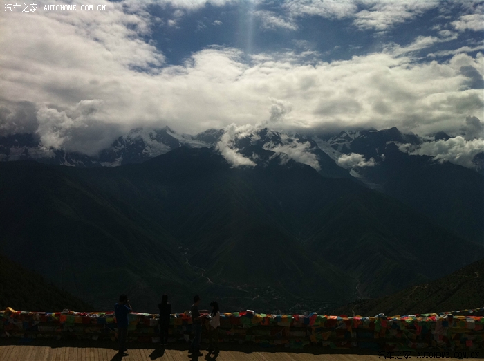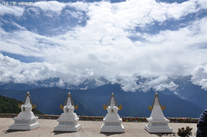 终于,看到了梅里雪山,这里就是飞来寺的观景平台。我们开始并不知道飞来寺就在这里,转过一个弯,大家都疯了。这座神山瞬间秒杀了所有人对美景的挑剔。从飞来寺的平台上能看到很远,第一次看到如此大规模的雪山,如此美丽的雪山,不说了,好好欣赏吧!
