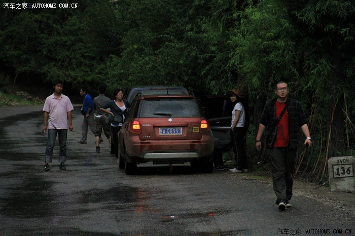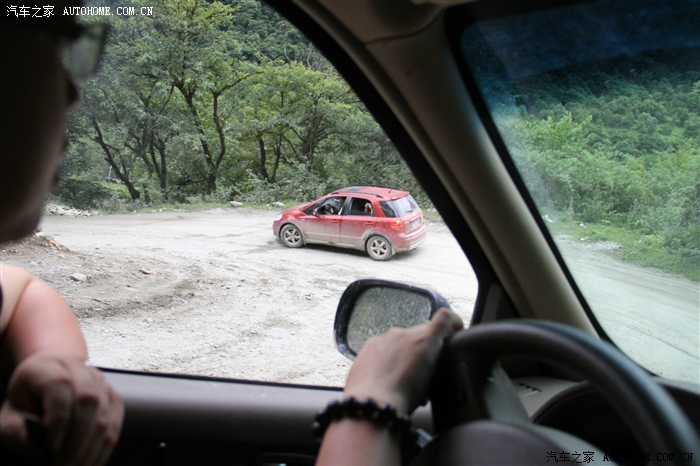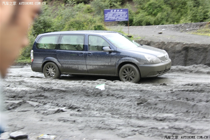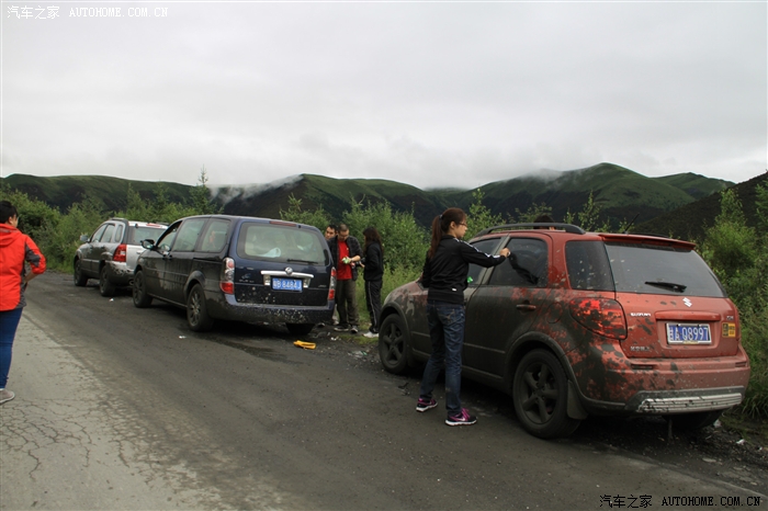 画面上不太能看出来,这实际上是一段很长的上坡路,坡度不小,非常滑。我看到一辆小面开着开着就原地打滑然后还溜车,赶紧让大家都下了车,好减轻重量。司机们基本都在坡底下停下,勘察一番才敢试着前行。我们队里的男人们站在泥地里随时准备推车。幸亏我们是前驱,若是后驱车,面对这种稀泥弯道爬坡可要哭死。倒是猴子的小天语利索地爬了上去,把那些原地打滑的大家伙甩在后面。