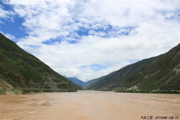 天空中纯净的蓝和即将伴随我们很久的湍急浑浊的金沙江