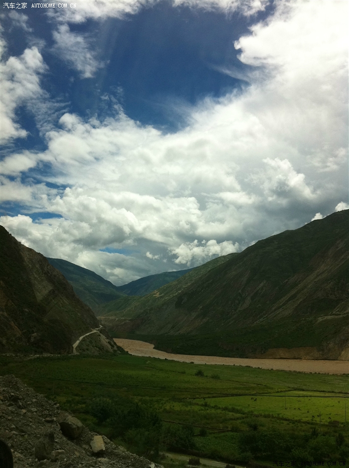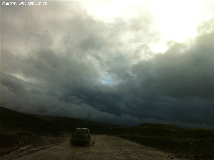 加完油继续前行,乌云中的一点蓝天。蓝得很不真实。在这附近,大姐不小心把她的爱疯掉了,等发现丢手机的时候已经开了2公里左右,那么大个地界,也没个标记,可居然就在马路边上找到了。当时可是下着小雨呢,手机沾了不少泥水,居然还能用。扎西德勒啊!