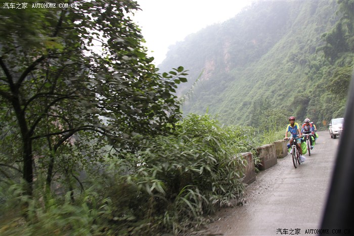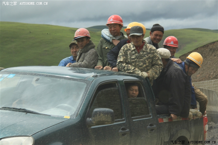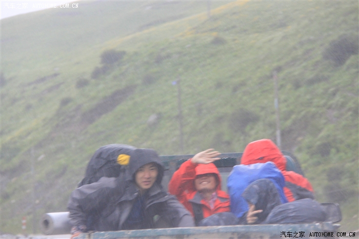 前面皮卡上搭载的几位背包客,想想他们,再想想我们,在这雨天里还是幸福的。如果他们的车溅了一滩泥……