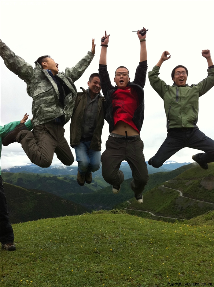 九死一生之一,我们的徐工在开狮跑在山路超车时右后轮爆胎。路面上有些尖尖的碎石,颠一下就爆胎了。幸好当时路况没那么糟,只是换个胎就行。运气差点的话,后果不堪设想。其实这时还有一个九死一生,我们当时并没有意识到。其实这个时候狮跑车的刹车片已经耗尽,开始报警。大家竟都以为是底盘或者皮带的声音,准备到德钦再说。这件事情想想都后怕:山路,下坡,弯道 ,万丈悬崖没刹车..................你敢坐这样的车吗?看看我们的队员。跟没事一样!