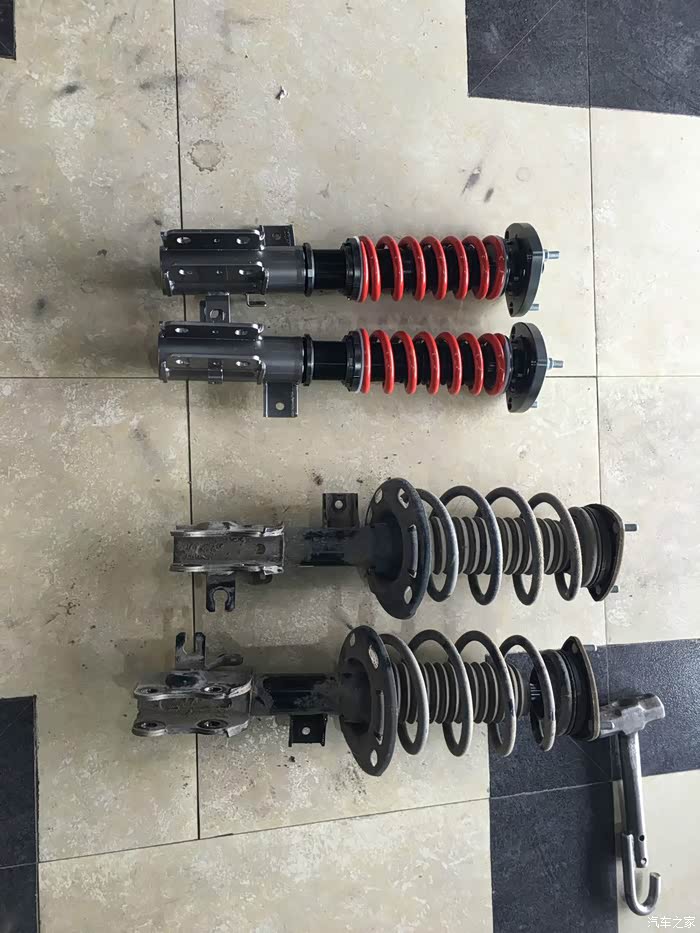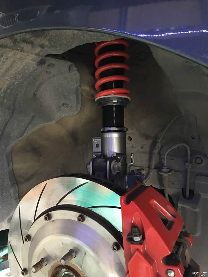 第五篇,轮胎和避震……原厂的避震,怎么说呢。支撑力度不够,弹簧软反弹过快……low 低是必须的!关于换避震也是选择良久,在和大众的途锐、cc、尚酷、原来翼神车队、fanssy车队、飞凯车队等等的交流和试驾之后,还是没有选定,D2适合自己,可是设计和做工差点意思,同价位的BC和Border比较硬,BC的后轮位置有点异响,TEIN的价格贵,SA不是全段调节,不带塔顶,FX目前国产,但是车队都没有货(老板不置可否,这样一般都是有隐情的我认为),后来接触了零点漂移俱乐部的老板,了解到日本工艺的LT 这个牌子,看到实物非常满意,自带鱼眼塔顶,可以调节倾角,可以36段调节阻尼,高低调节,功能强大一次到位,以后还可以直接改装气动变成缴牙气动避震(这个听了是不是很牛,似乎无敌了呢)实际证明,安装后效果还真是不错,硬度明显上升,转弯支撑力没得说,90-100公里时速90度手刹掉头,以前会转向过度,明显打滑。我还以为是轮胎的问题,准备换轮胎加装顶吧和平衡杆呢,结果装上以后效果改善太多了,不到六千的价格真的值了!low低后,前后一指……通过性完全没有问题,过减速带弹簧硬归硬但回弹的利落,舒适度并没有减低很多,和原厂相差不多。进出地库也没有问题