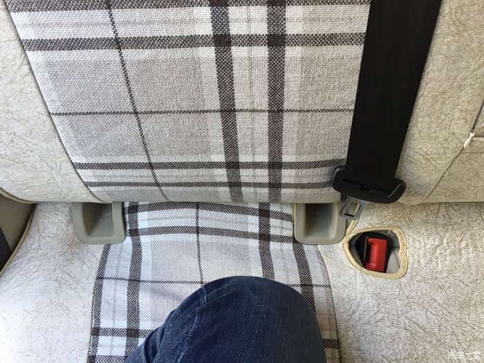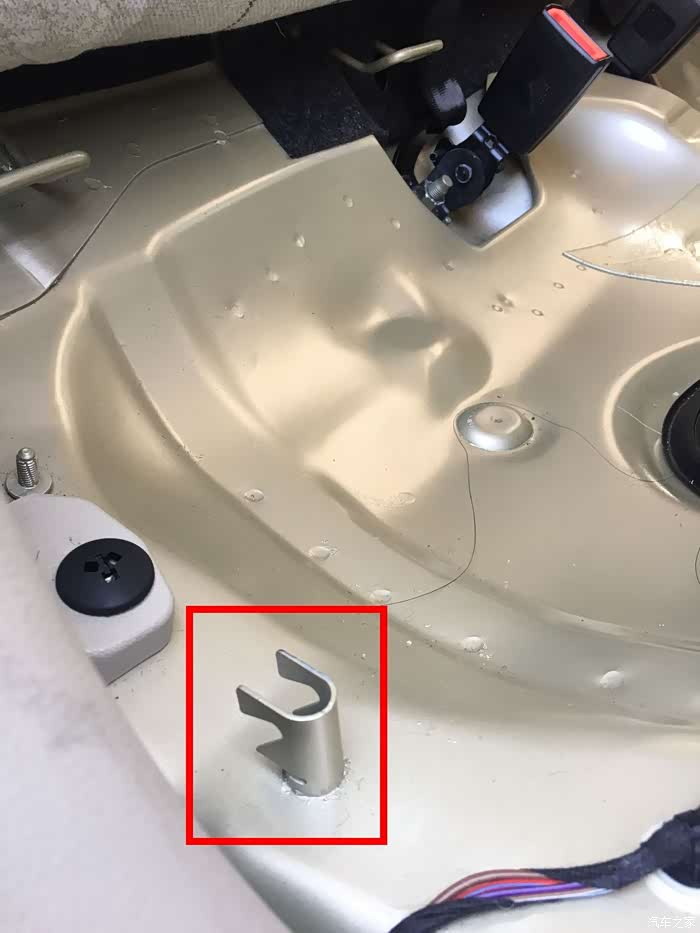 2边都拉出后就可以取下后排座椅了,看下红色框内的卡扣,看下下面的放大图,哈哈
