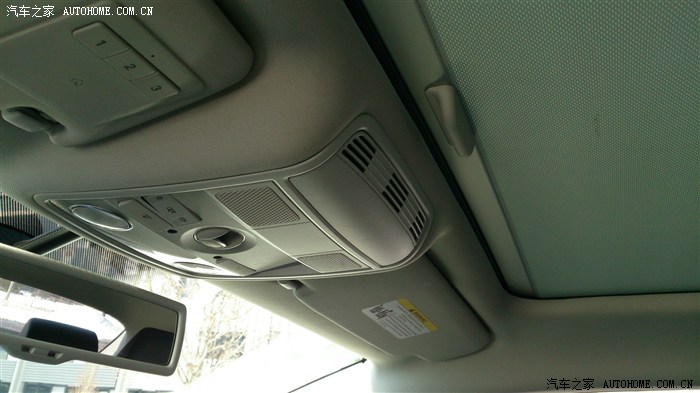 CC天窗的面积很大,但是他的功能是个很鸡肋,因为天窗只能翘起不能向后开,隔层也很薄,如下图所示,中间那个圆圆的控制键只有翘起和关闭的功能,不过因为是卖到美国的版本,主驾驶遮阳板上面的123按钮是开启车库门用的,而且还要自己买个信号发射器,所以对于住校的孩子来说这个功能等于没有。