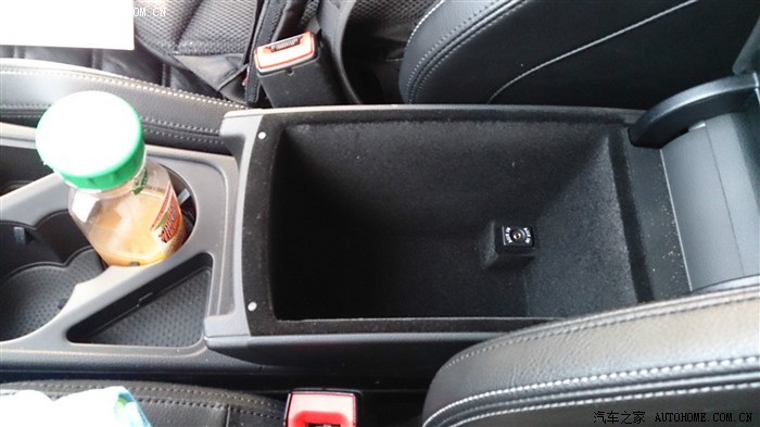 中央扶手内的空间不大不小,合理安排能放下3瓶水和一个导航,里面有个AUX的接口