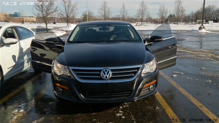 我的CC是2013年9月低买的,是2011款,买的二手车。去了当地最大的一家汽车销售店SUBURBAN旗下的大众店看车,当时看到新款CC的进气格栅时我就震惊了,这前脸实在是太让我无法接受了,为了所谓的家族脸就把帕萨特的脸拍拍扁变成CC的做法令我实在没有勇气去购买,相比之下还是旧款的前脸好看些。我看中的是一款黑色的豪华版CC,2.0T直列四缸发动机和六速自动挡前驱,裸车价2万零300美金。话说原来想买一辆银灰色碳纤维内饰手动挡的,只要1万6,因为店里只有一辆,有个老外出手比我快就被抢走了0.0。试驾完对动力性能各方面都是比较满意的,接下来看配置了,国外的高配远远不及国内的CC。国内的高配是带导航、天窗和倒车影像的,国外的CC高配就是全车雷达+天窗+双区恒温空调,中控显示屏竟然不带导航功能!!!最坑爹的是连氙气大灯都没有(⊙o⊙)…店里的销售说增加配置要加钱,如果要氙气大灯和导航功能的话要加3000多美刀。。。。。我瞬间就放弃增加配置的想法了(PS:国外买新车很多配置都要和销售说清楚,在购买时选项选自己要的,像氙气大灯、导航、天窗什么如果不选就是没有的,而且在国内很多连低配都有的功能在这里根本找不到,很多电子设备如并线辅助,后视镜折叠都没有的,所以价格便宜)然后就开始和老外磨嘴皮子了,让他给点优惠呗,送我一箱油或者免费送到住所(国外不认中国的驾照,所以不让你把车开回去,一定要你拖车拖回去=-=)。当时正逢冬季来临,早上去上课外面零下5度走过去要冻死的,在我无数唾沫的攻势下最终给的优惠是免税,最后连车带税2万零300搞定O(∩_∩)O