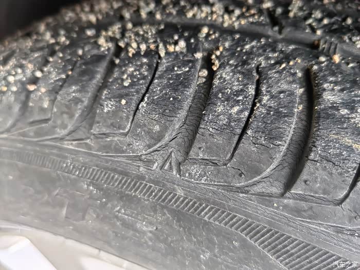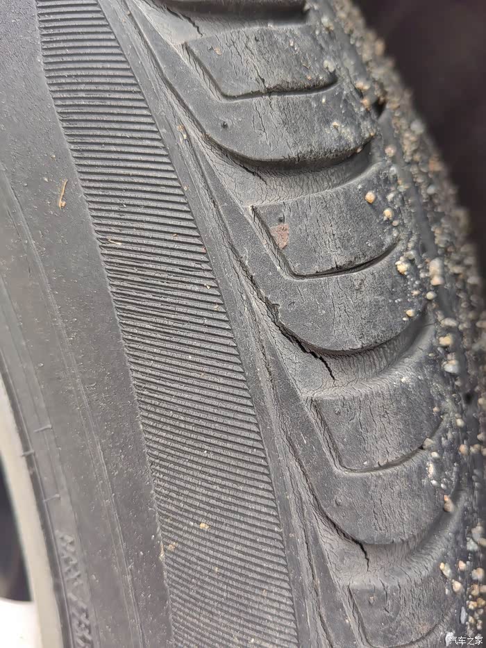 由于百分之九十都是市区道路,一年也就两次高速,郊区乡下基本不跑,所以想着再用一年。但前天在车旁边闲着没事看一眼轮胎,发现有明显裂口了。