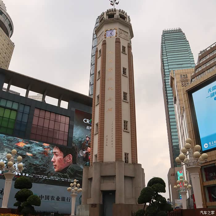 从 重庆 长 江南 岸返回北岸后,由于距离市中心解放碑比较近,随即徒步进入繁华的步行街,这里矗立着一座现在看来并不太高、甚至与周围高层建筑相比,显得矮小的纪念碑,这便是由刘伯承元帅题词的“人民解放纪念碑”,我们在这里深切缅怀抗日战争中牺牲的先烈。 重庆 解放碑是地标性建筑和繁华的市中心,景色环境很美。红色、枚色、紫色、黄色花海簇拥在解放碑四周,相邻的西田大厦、渝都大酒店等十几座高层建筑鳞次栉比,我是第一次来渝,深深感觉到 重庆 真是一派大都市气派!