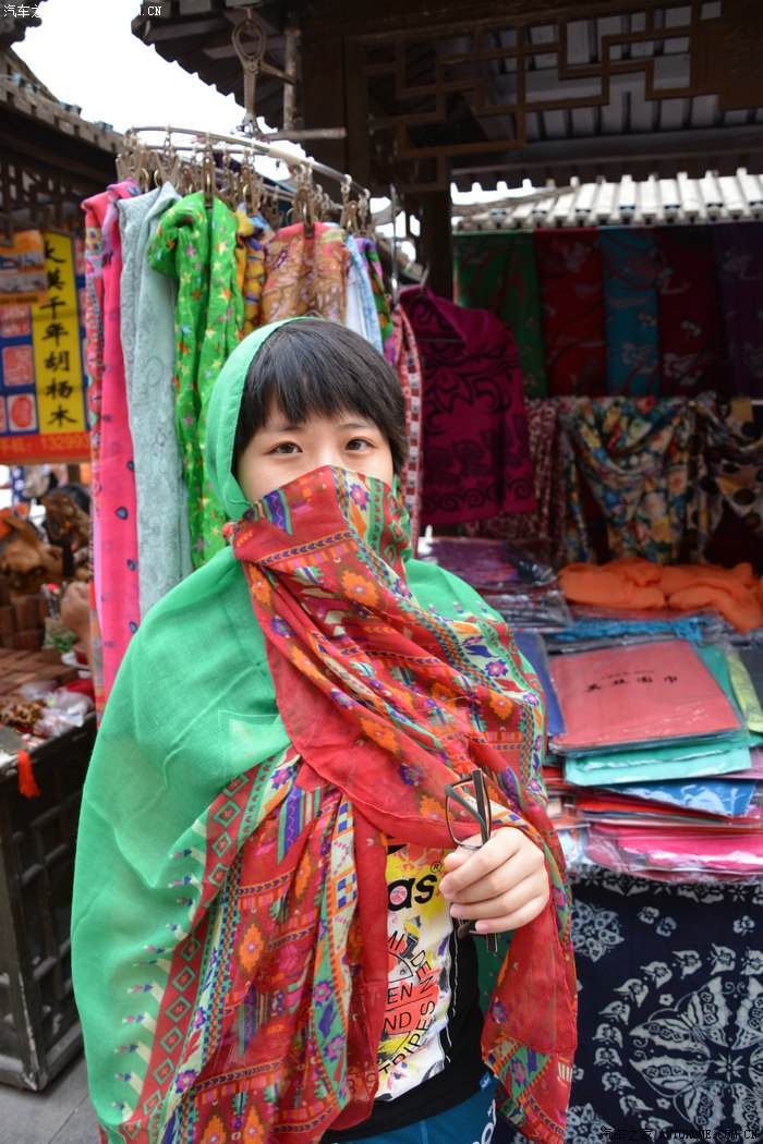 很多游客都在买围巾,我们为了防晒也凑个热闹,我戴上围巾怎么看都像恐怖分子