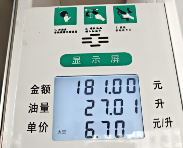 刚去把油箱加满了(原来还剩半箱),续航显示764公里。