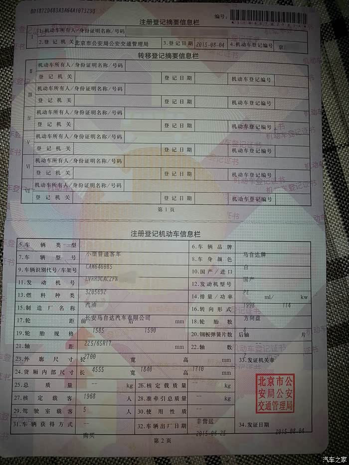 回家后马上在汽车之家上恶补CX-5的评测,用户口碑等,各方面反响都不错。而且2015新款改进了之前的一些问题,加上我对马自达的创驰蓝天技术的了解。此时心里已经偏向CX-5了,过了几天。不知道老婆大人是不是看穿了我的心思,对我说:要不就买CX-5吧。一锤定音,就是它了!在看车的同时,顺便把小三给处理了。原来旧车可以自己卖了,再把手续给4S店办理置换补贴,只是他们不会这么好心白忙活的,手续费2000!太黑啦!!!无奈人在屋檐下不得不低头啊。本来打算网上拍卖了,后来楼上的邻居大哥说想要。就卖给他了。现在小三每天都能看到,可是它已经不属于我了。