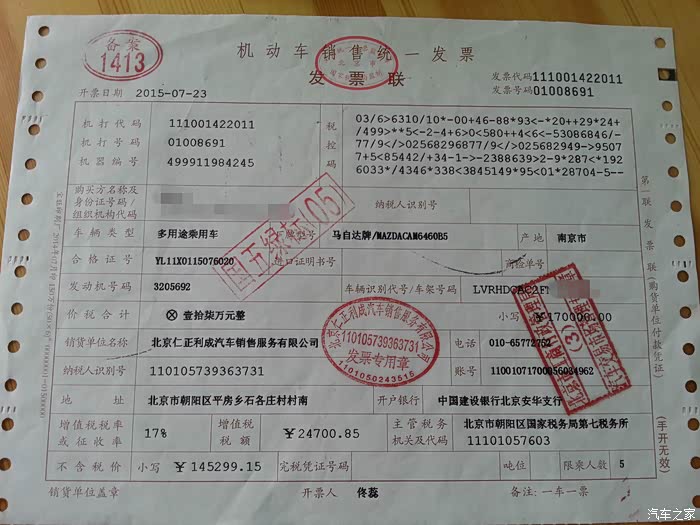 第二天我打电话给4儿子店销售,被告知:因公司领导变动,合格证今天拿不了,可能得一周。我一听心里就有股无名之火,拿不到合格证就无法上牌照。可是已经付了全款,只能打掉门牙往肚里咽,前车之鉴啊……