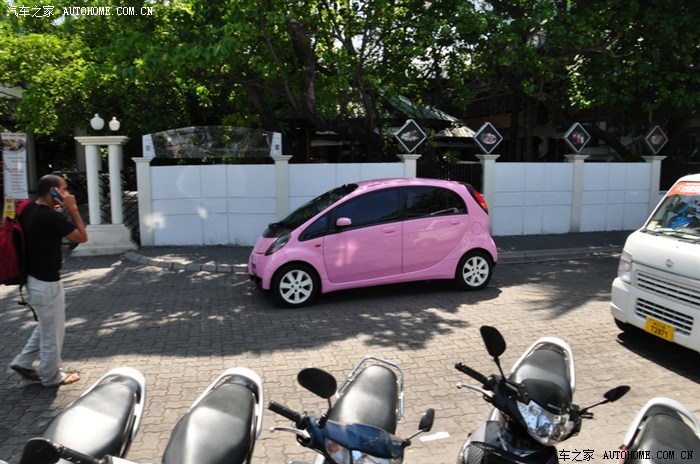 粉红色的丰田雅力士,马累到处都是日本小车,经济实用啊