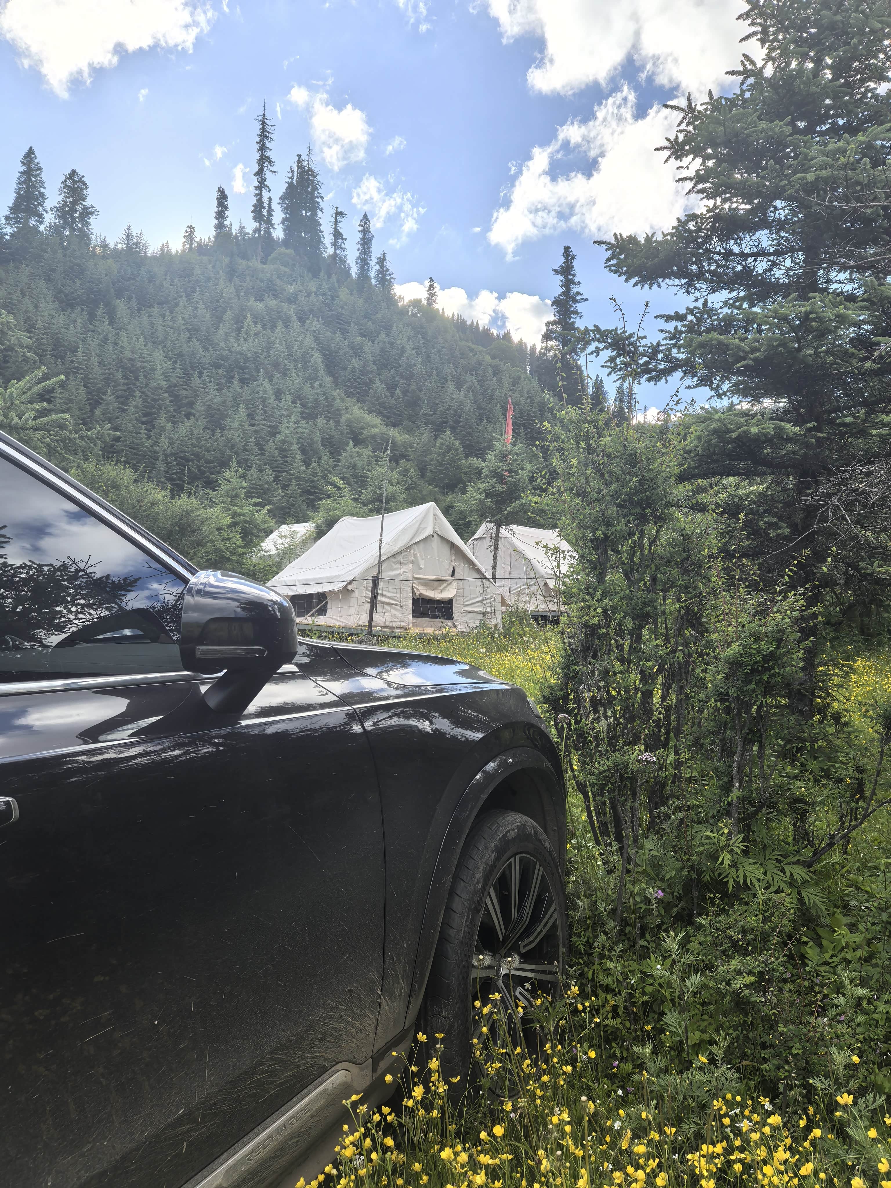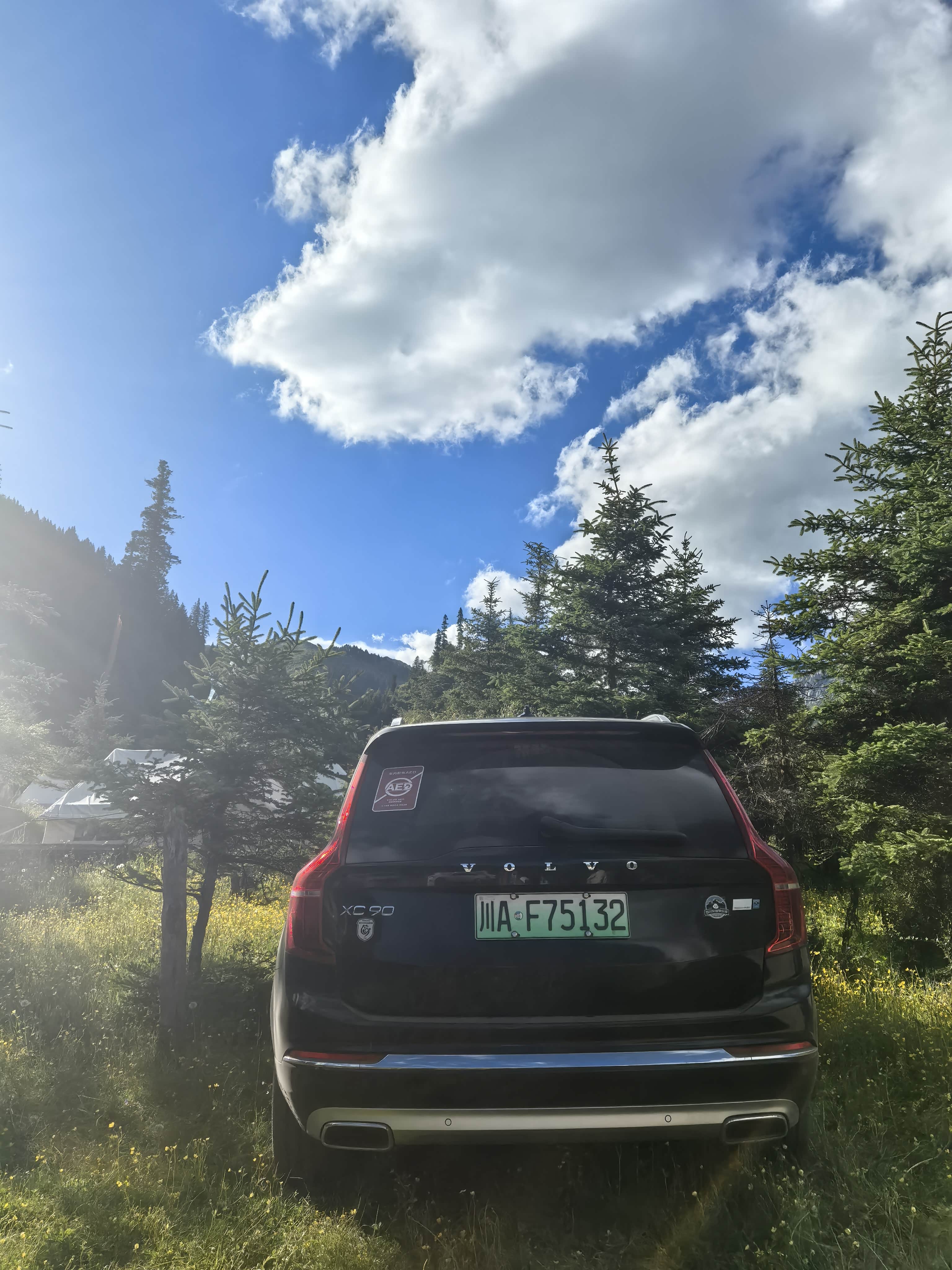 松潘营地在海拔3500米,手机没信号,只有营地WiFi,速度勉强回个微信。放下行李,沿着花海慢慢走,不敢跑,怕高反。晚上牦牛火锅、藏族咂酒、锅庄舞,儿子第一次看见银河,拉着他爸数北斗七星,兴奋到不肯睡。我坐在车顶帐篷边,望着满天星,忽然觉得XC90,已经悄悄成了我们一家人奔向远方的底气。