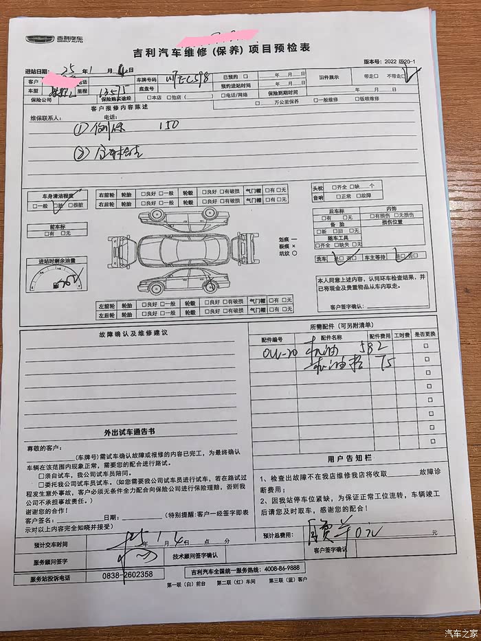 在提车后的第十个月,我接到了4S通知我可以对星越L进行第二次保养的电话,此时距离首保仅仅过了半年时间,行驶里程13562KM。在此之前,手机吉利APP健康助手和汽车仪表盘也已经推送需要进行保养的提醒,汽车健康助手里更是提醒此次保养应更换空调滤芯和空气滤芯。根据以往的用车经验,提前在车品服务和线上适配品类进行了比较,也向其他车友进行了取经,最后自己在线上购买了两套滤芯准备在保养时进行更换。此次保养除了基础保养和更换空滤之外,我更需要解决主驾的座椅不通风的问题。