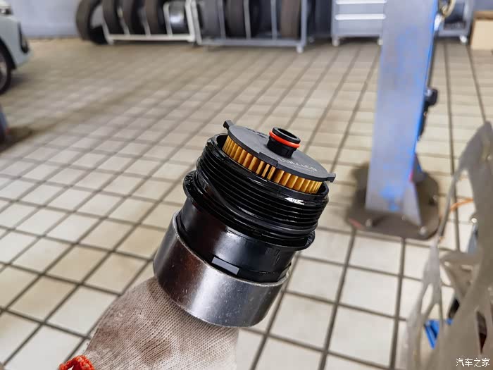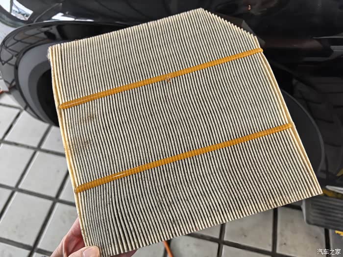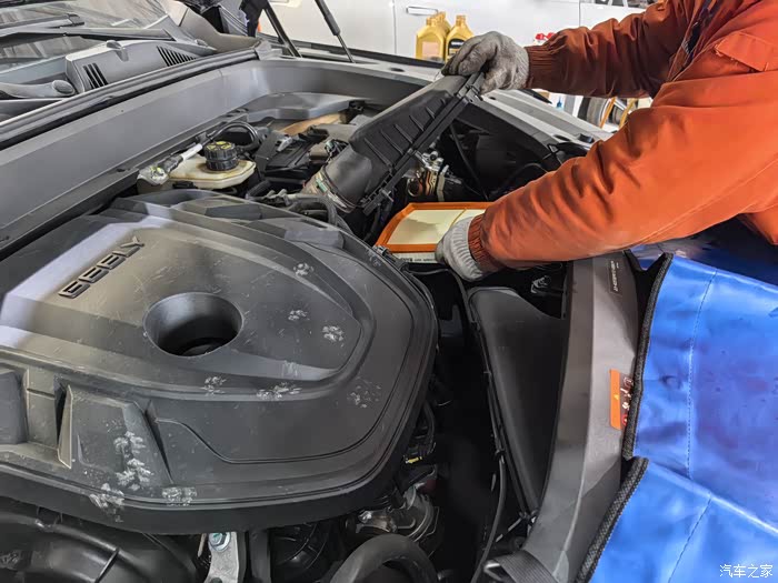 因为正常保养在不更换空滤的情况下技术老师也会帮忙处理一下滤芯,所以在他取下滤芯的后将新的空滤装了进去(其实平时自己也是能够进行更换的)。