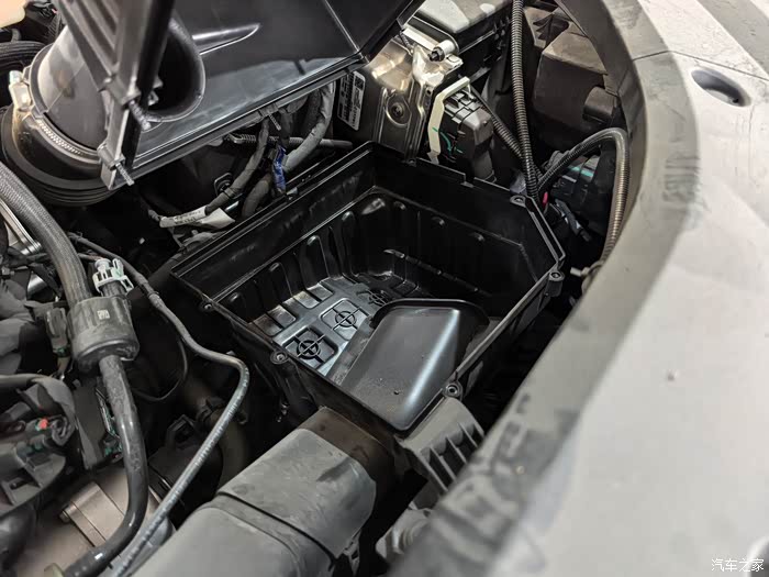 其次是更换空气滤芯,空气滤芯在发动机舱右侧黑色方形塑料盒(进气管连接处),用螺丝刀旋开滤芯盒四周的 6颗十字螺丝(注意保管避免掉落),轻抬上盖,注意底部隐藏的定位卡榫,斜向45度角缓慢分离。取出旧滤芯,注意安装方向以便正确安装新滤芯,确保完全嵌入凹槽。
