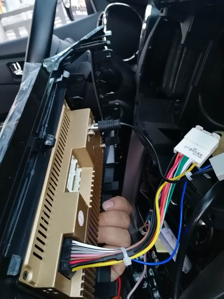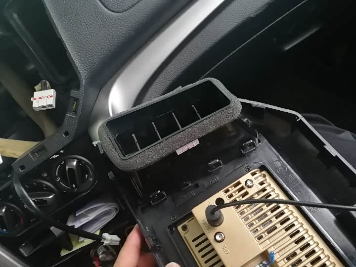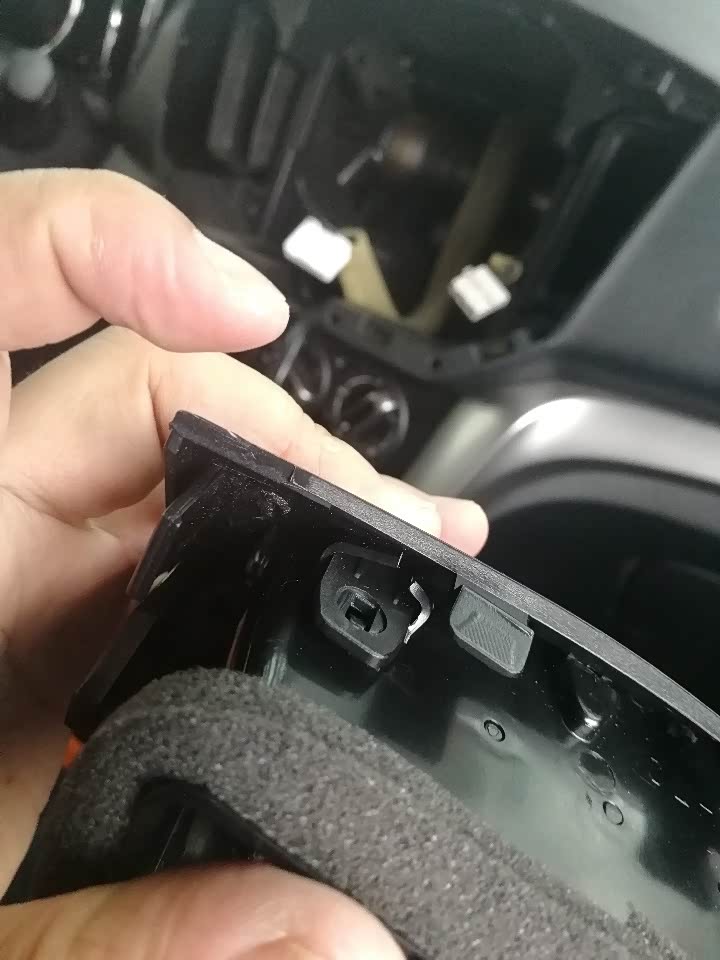 好了,效果图已看完,开始发教学,我是2019年5月11日收到货的,5月12日下午5点多开搞得,刚开始拆中控屏收音机,一直拆不下来,然后请教车友胡生,他告诉我,拆机的方法。原来中控屏下面有一个孔,把拆机的工具,放进那个孔里,从下面开始拆,拆的时候要小心点,不要把上面的卡扣搞坏。