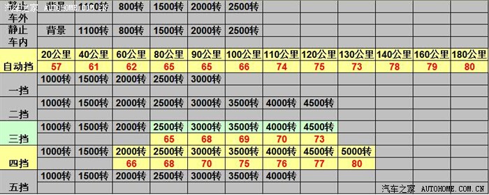 70公里匀速:62分贝(2000转左右,这个转速噪音听起来似乎最大)