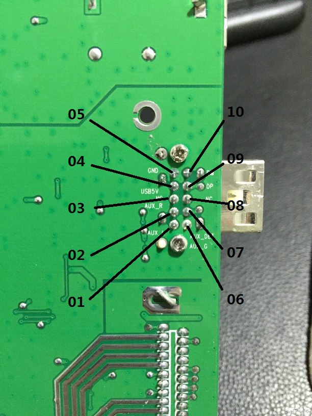 我的原车CD是自带AUX/USB插口的,所以在电路板的背面会有相应的焊点,原理很简单,这个电路板AUX OUT接CD机的AUX(AUX分为左、右、GND地线),电源供电两根线直接接到USB供电就可以了(一个黑线一个红线),看下图