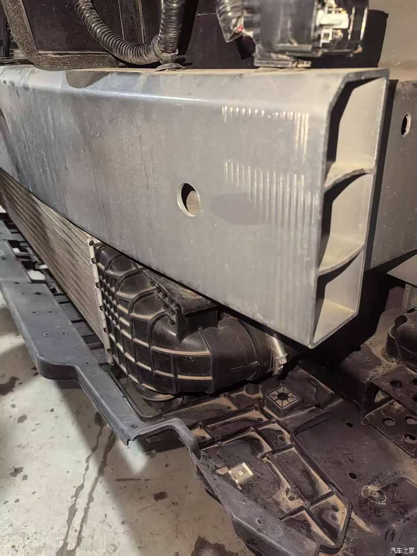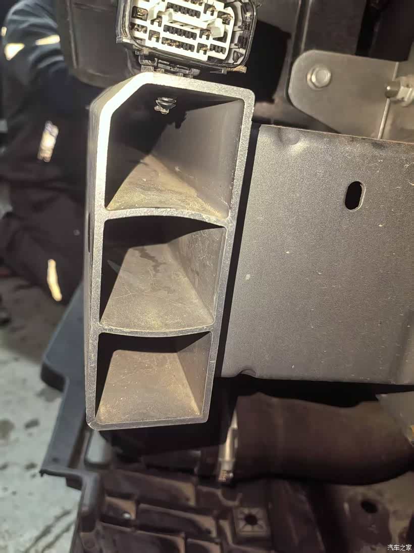 借这次拆杠的机会,也看到了大8那厚实的前防撞梁,全铝材质,侧面目字结构,看上去真的让人很踏实,很有安全感,感觉这钱花的值