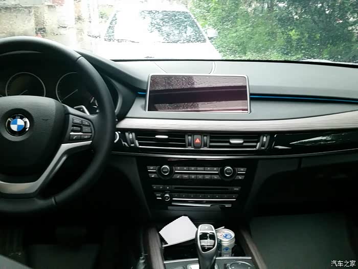 选车的经历咱就不讲一大堆了,反正都是各品牌分析后选了X5的,在决定要X5的时候就开始混论坛学习,不懂的就发帖求问,感觉自己基本了解后去了4S店,对车子的选择和了解比他们接待经理都熟,嘿嘿!他们说碰到行家了不敢糊弄。因看到很多说电吸门问题多,从心里就开始排除,在典雅基础上选装:抬显、哈曼音响(不是金耳朵BO就不选了)、19寸的449轮胎、全车影像、铝制行李架、实木装饰条(反正免费的就选了)、运动组件、氛围灯、通风座椅(长途多腰也不好,自己必选配置,就是很遗憾只能接受黑色内饰)、LDE雾灯(本来选LED大灯的,报错了,等改已经下单改不了,遗憾)。 订完车后10天出了车架号,然后就开始提前准备脚垫,建议大家提前一个月买脚垫先通风去味,脚垫选用了海外购的原装橡胶,个人比较讨厌国内那种假皮全包围的,笨重而且味大,最主要不安全以前就应为不小心卡住油门差点出事。脚垫定下到拿到手1个月时间,什么牌子的,看我以前贴。在车子到港了就开始网购了原装记录仪,和一些小玩意。