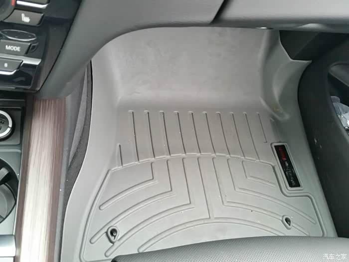 下面是选装的通风座椅,大腿支撑很舒服。海外购的原装脚垫很合适没有间隙
