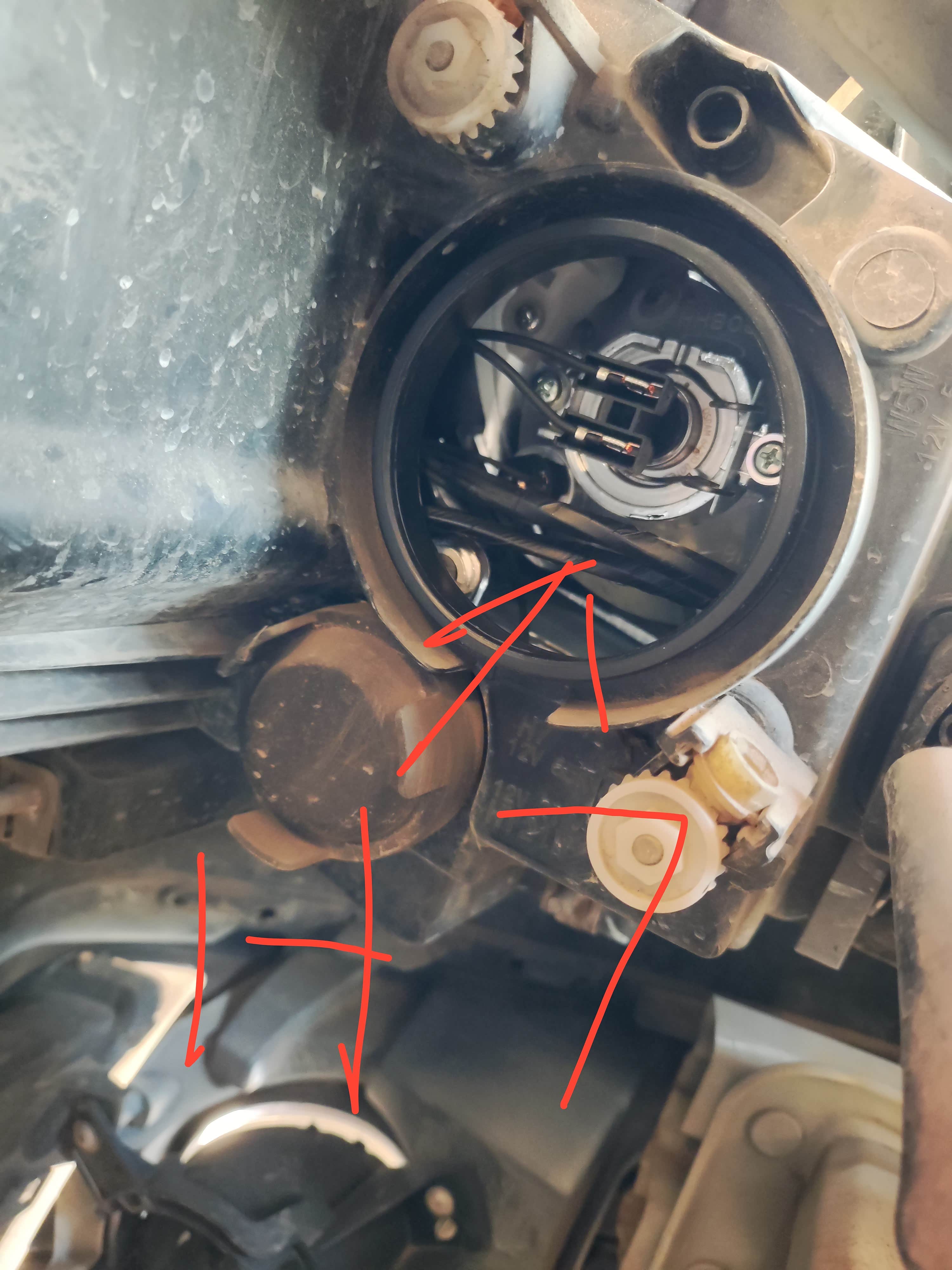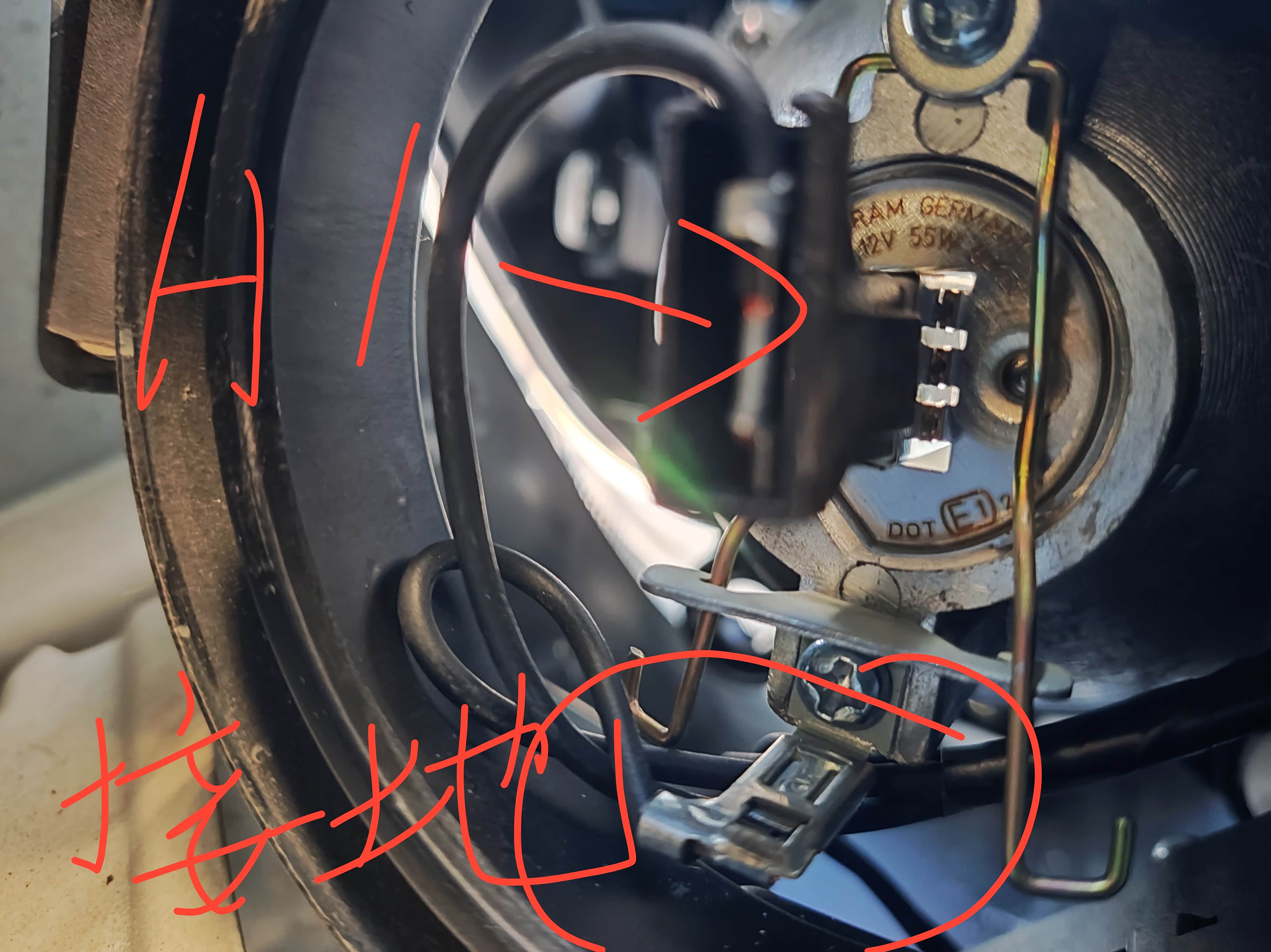 我是拆了机箱的前面装饰盖,才能摸到远光灯。勉强摸到近光灯。需要手机摄像拍着点才能看到什么结构。然后h1没接触过,竟然是火线插灯泡,零线接地,这很神奇。新换的led灯,两根线倒是都插灯上了,亮也了。左侧俩灯泡,用了一小时。还有这俩灯泡的胶盖,尤其近光灯,根本抠不下来,太恶心了。。。。难道是因为冬天?