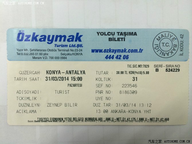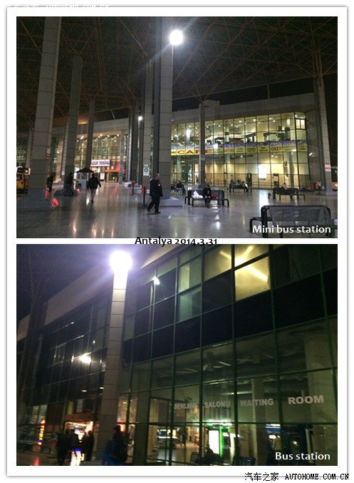 巴士是Ozkaymak家的,有个无线网,但是一直连不上...一路翻山越岭,中间休息了1次,到8点的时候刚进市区...我们俩一直担心买不到票,8点半终于到了,下车就往售票大厅里面奔,开始去的一个柜台只有9点半的,而且说就这一班了,我们找了一圈没看见Metro,问了安检人员,说在对面的大厅,又奔过去,Metro说没有了,去对面的Mini Bus那里买,我们才明白,刚才去的那个大厅是Mini Bus大厅,这边是大巴士的大厅。这次行程Metro的大叔对我们说的最多的就是....去旁边/对面问问...安塔利亚巴士站下车,面对着大厅,左手边是大巴士大厅,右手边是中巴大厅。跑回去买了9点半的票,总算是舒了口气。买了2个面包准备饿了吃,9点半出发了,这次的经历真是痛苦啊...中巴里面的灯很亮,而且要开一会儿才会关,基本开个20分钟停一下上人,中间还休息了半个多小时,2名乘客趁机吃了顿饭...然后到12点半的时候...还在高速上,我们知道,又没办法准时到了.....终于一路醒了睡睡了醒,颠到了凌晨1点...到了。太痛苦了...