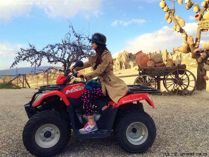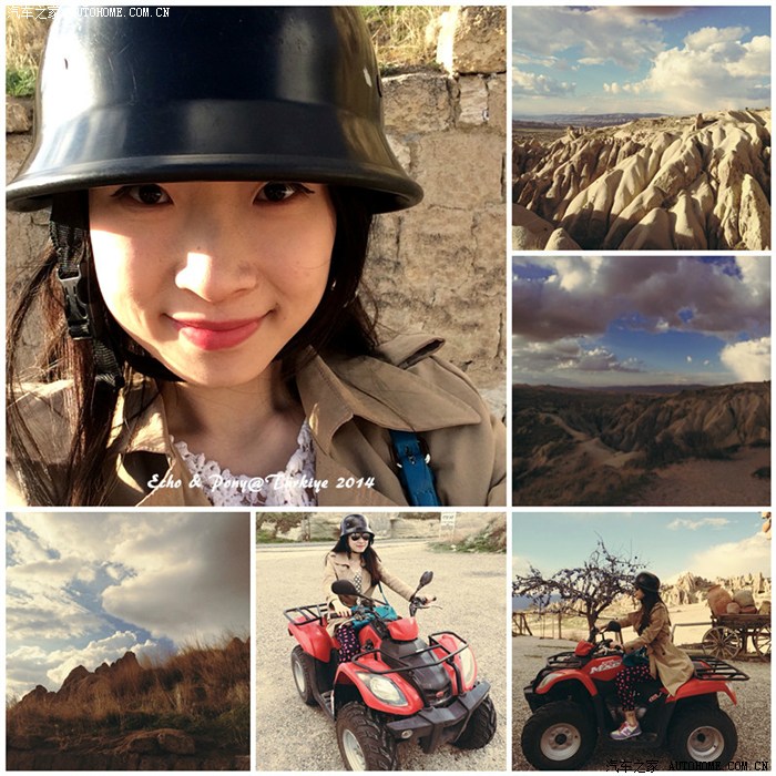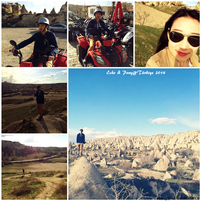 好多地方都能看见租ATV的,我们随便找了一家,70 TL/2小时,我们顺着地图的红线瞎开,风吹得我跟黑发魔女一般...路上看到可以照相看风景的地方就停车,开到了露天博物馆就没再网上开,也没进去看。走到了Rose Vally,Red Vally,很壮观,与张掖的丹霞地貌还是有差别的。(我们在照相的时候ATV就停在路边的空地,还一直担心会被人推走,回来后它还很安全的在那里~)