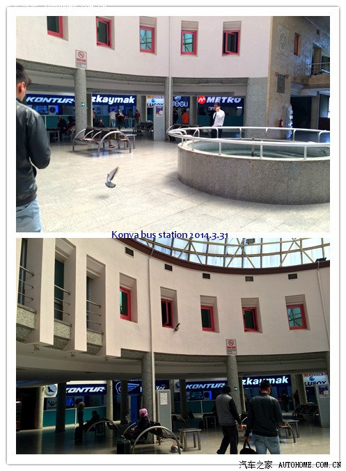 回到酒店,收拾东西,我们就去了OTO GAR。男盆友还把手机落在了酒店.....工作人员还开车出来追我们送手机~~~人真好呀~~~我们坐的是Suha的大巴,能上网,还会发水和零食~一路晃荡了3个半小时,1点准时到了孔亚。下车去买票,孔亚的售票大厅是个环形的,中间还有一个小喷水池,鸽子在里面飞来飞去~先去问了Metro,没有,让我们去对面问,又跑到了对面,吐槽下售票员的英语吧...我们能和他们沟通的词仅限于:Antalya, when, how long....然后他们就听不懂了,我们还想问到了安塔利亚能不能还有去费特希耶的票,因为车程要5个小时,怕到了安塔利亚太晚,买不到去费特希耶的票。工作人员死活就是听不懂,最后说: Antalya 3 pm,3hours OK?.....没办法,买了再说吧...